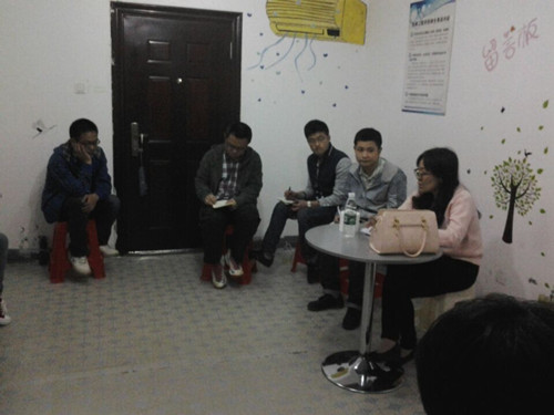 2015年4月19日晚7:30分,琴湖12栋架空层——机械院党员活动之家, 院学生党支部书记郭植昭老师、本科生四个支部所有支委,大家欢聚一堂,就机械院2015年上半年本科生的党务管理、党员活动和党员培训及发展等一些列问题,进行了广泛、深入的大讨论;也对今后机械院的党务工作进行了局部的改革和详细的安排。