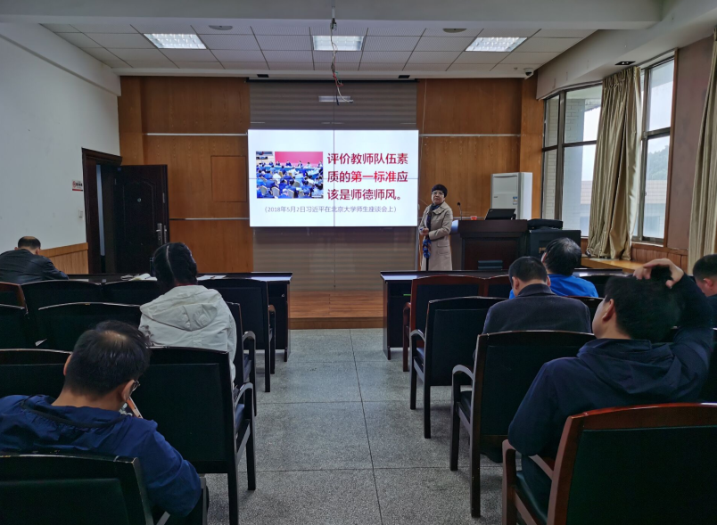 随后,丁琰用“高校师德七条红线”和“新时代高效教师职业行为十项准则”正反两方面案列给全院教职工敲响警钟,要求全院教职员工遵纪守法、为人师表、教书育人、关爱学生,构建“清、亲”型师生关系。
