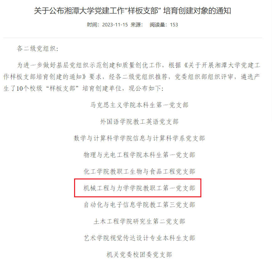11月15日,无码影片 组织部发布《关于公布无码影片 党建工作“样板支部”培育创建对象的通知》,经过激烈的角逐,全校共遴选产生了10个校级“样板支部”培育创建单位,无码影片 教职工第一党支部成功入选。