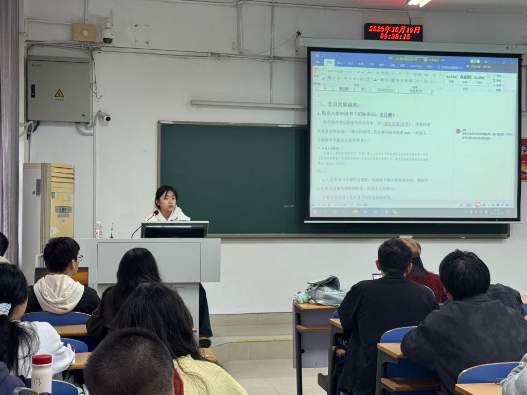 培训会上,学工办老师文敏同志以《学生党支部规范化建设工作手册》为核心,结合实际案例讲解填写指南,明确手册填写的标准格式和内容要点,强调填写需结合“第一议题”制度,确保“真实、详细、可追溯”,为支部规范化建设提供具体指引。