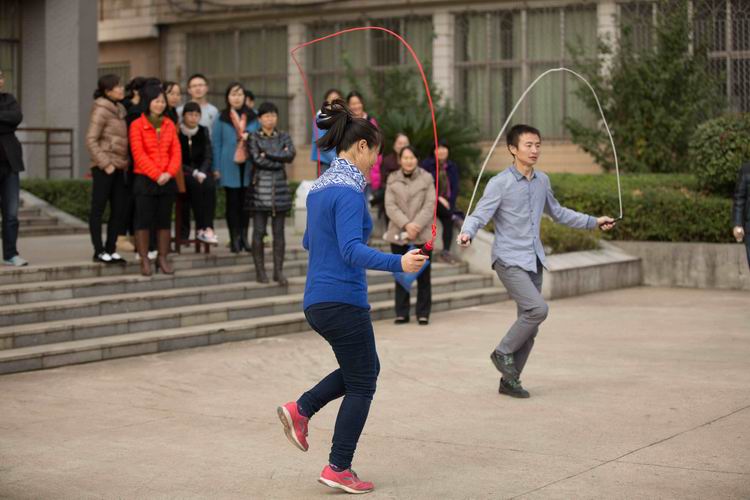 在机械楼前坪举行了全院教职工跳绳比赛。