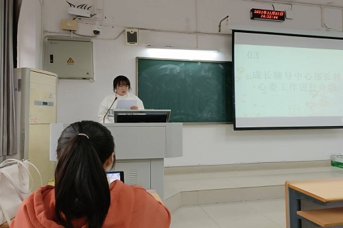 随后,成长辅导中心部长郭析房对成长辅导中心的主要职责以及其各项工作进行了系统的介绍,并对各心理委员与部门的联系和日常工作做了详细的讲解,她在讲话的最后表示,希望心委们能在日后积极地配合成长辅导中心的工作并且共同努力将各项活动更好地完成。