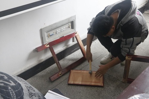 在主持人的领誓下,老师及志愿者们进行了庄严的宣誓:“我是雷锋精神传承人!我在国旗下宣誓:向雷锋同志学习!”相信这些宣誓词一定会深深地刻进在座每个人的心中。紧接着,15名志愿者开始了紧凑的维修打扫工作,他们身为机械院学子,凭借丰富的动手经验和团结协作的精神顺利完成了本次志愿活动。男生负责六楼工图教室旧桌椅的维修;女生负责五楼的卫生打扫,为建设美丽校园贡献了自己的力量。最后,同学们将新送达的椅子进行了组装,以实际行动将雷锋精神践行到为同学们服务的每一件小事中。