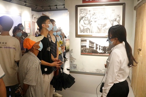 在陈列馆,实践团成员们首先参观了记录汝城革命发展史的一楼展厅。在工作人员的讲解下,实践团成员们了解到,汝城县拥有着悠久的革命历史。在这块红色土地上,发生了“朱范谈判合作”“策划湘南起义”“中央红军突破第二道封锁线”等众多载入中共史册的历史事件,留下了毛泽东、朱德、邓小平、陈毅等老一辈无产阶级革命家的光辉足迹,使汝城成为当时湘南革命运动的中心,对湖南革命运动蓬勃发展起到重要作用。