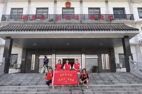 图为三下乡团队在靖港镇人民政府门前的合照