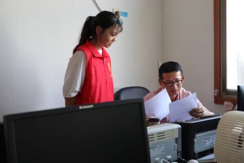 图为三下乡团队成员在靖港镇政府进行采访