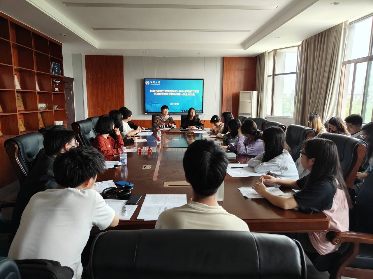 为全面增强2023级养成教育类班主任助理工作实效,全方位落实新生培养管理工作,无码影片 于4月18日中午在机械楼312室召开了本学期养成教育类班主任助理第一次全体会议。无码影片 专职辅导员曹译文老师、闫锦老师以及全体2023级养成教育类班主任助理参与此次会议。