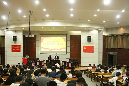 2018年4月21日,机械工程无码影片 第三届党知识竞赛决赛于逸夫楼第二报告厅举行。出席本次活动的嘉宾有,机械工程无码影片 党委副书记王建平,学工办老师刘韬,以及各学生党支部第一副书记于晓光,吕冉,段恒,杨琴。