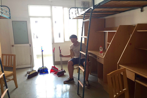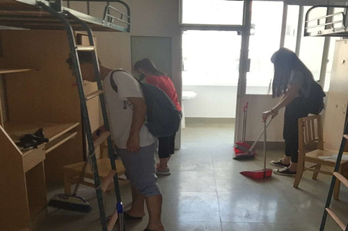 (图为学生干部下寝打扫)