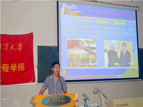 李业鹏中尉以“当前我国周边安全形势与应对策略”为主题展开授课。李中尉以“风声雨声读书声声声入耳,家事国事天下事事事关心”,提醒大家在学习之余多关注时事政治。首先李中尉向大家介绍了“我国周边环境”以及“国家安全”两个概念,并详细讲述了我国周边环境特点以及我国日益恶化的安全形势。李中尉向大家讲述了台湾问题,中日问题,南海与中南亚等我国周边环境的主要问题,并用丰富的事例阐述了中美关系中美国对中国的经济遏制。介绍完周边环境之后,李中尉向大家介绍了“一个主题,两大公害,三种态势,四股潮流”四个国际安全形势的基本态势和国际局势的五大特点。最后,李中尉阐述了我国对待周边环境安全的五大策略,包括推动多边主义,把握韬光养晦与有所作为的关系等等。李中尉的授课语言平实、事例丰富,获得了在场学员的阵阵掌声。