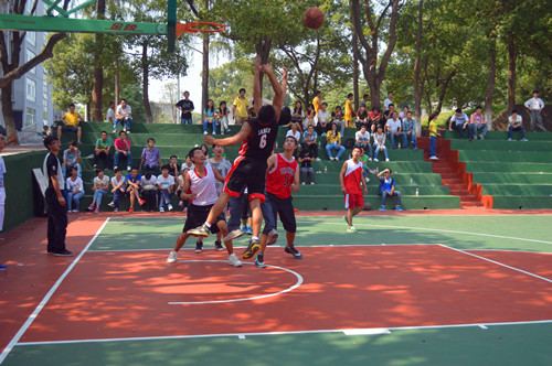 上午11点20分,双球运动会中的篮球赛也正式开始,本次比赛的参赛队伍一共有5只,分别是:学生建设中心与生活部组成的学生队、爱心集团和心理部组成的噼里啪啦心心队、规划发展中心和体育部组成的土豪队、公关部和文娱部组成的放弃治疗队、宣传部和组织部组成的小伙伴队以及开放性实验室单独组成的三阳队。赛场上,各队拼尽全力,你来我往,打得难分难解。最后放弃治疗队力挫群雄、勇夺桂冠,土豪队惜败,获得亚军宝座,而季军则由学生队夺得。