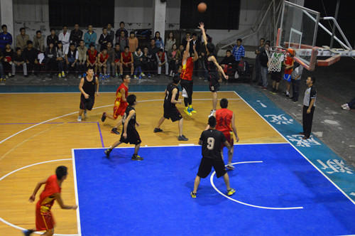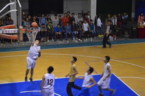 随后就是今天的重头戏,传承杯冠亚军的争夺,比赛双方分别是材料研究生和10材二。主持人分别介绍了双方的队员和本场比赛的裁判。在裁判的一声哨声后,比赛开始,一开场材料研究生就展开了猛烈的攻势,他们通过三分和稳定的手感在一开局打出了10:0的小高潮。尽管之后10材二开始追赶,但第一节结束材料研究生以19:8领先。第二节,10材二在9号杨栋的带领下使对方一分未得,但半场结束10材二仍以13:19落后。中场休息时,美女啦啦队为观众带来的热舞表演,引爆全场的气氛。第三节开始,双方都做出了调整,准备最后一搏。而此时材料研究生的两名首发队员陷入了犯规困境,但材料研究生全民皆兵相比于材二依靠9号的进攻还是占据些优势,而材二9号也身背四犯。第四节一开始,尽管材二尽力反扑,但研究生队5号龙涛的三个三分球使反超的希望更小了。第四节后半段材二的主力9号杨栋五犯离场,最终材料研究生以52:39夺得了本次传承杯的冠军,而10材二获得亚军。