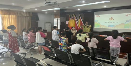 随后,实践团精心编排了一系列红色经典歌曲教学课程,包括歌曲曲目《国家》以及对应手势舞的教学。志愿者们不仅教授歌曲旋律,还结合歌曲背景,用生动有趣的故事讲述背后的历史意义,让孩子生们在歌声中感受党的光辉历程和中华民族的伟大复兴之路。