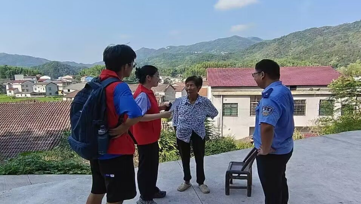 早上7点,沙团村实践团成员已经集结完毕,迎着朝阳和晨露,赶往各户村民的家里进行森林防火宣讲活动。詹桥镇沙团村周围群山环绕,植被茂盛,森林面积达3990亩,安全防火不容忽视。中元节临近,不少外出务工人员返乡和村民进行祭祖、焚纸锭活动来表达对逝去亲人的孝敬和思念。为了保证节日期间森林用火安全,提高村民安全祭祀意识,实践团成员此次深入村中走访,在村辅警的陪同下进行森林防火宣传,宣传的内容包括:实用消防知识、火灾的严重性、火灾的成因、预防与应对措施以及森林火灾的法律法规普及。村民在听取实践团成员的宣讲后,纷纷表示“森林防火确实很重要,今后一定会谨慎用火,共同保护美丽的家园!”