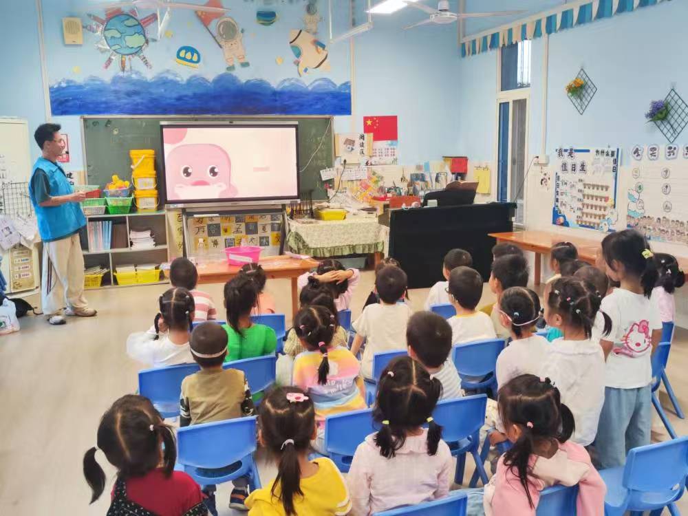 团队结合幼儿的年龄特点进行内容个性化设计,用心准备内容、精心设计方式、耐心打磨环节。宣讲过程中,宣讲志愿者们讲得生动,小朋友听得入神。通过《零碳西游之大圣归来》与《核力出奇迹》两部小动画,让小朋友们对“核力量”有了初印象;通过火山实验、静电实验、气球火箭实验等科学小实验,增强课堂互动,提高了孩子们的好奇心和探索欲;通过讲解钱学森、邓稼先等两弹一星元勋的人物事迹,引导孩子们认识科学家精神,树立发奋学习、报效祖国的伟大志向。