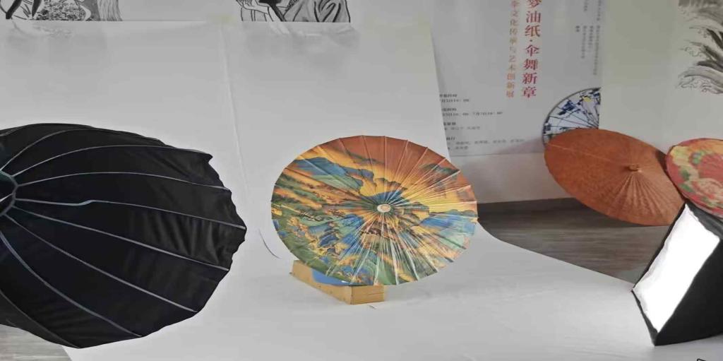 确定入选方案后,实践团迅速分工协作。一部分成员专注于伞面图案细节优化与包装设计改进,反复打磨,力求在保留非遗韵味的同时,让产品更符合现代审美与市场需求;另一部分成员则着手油纸伞产品拍摄与淘宝展示页面制作工作,精心布置拍摄场景、设计页面布局,用镜头与文字全方位展现油纸伞的独特魅力。