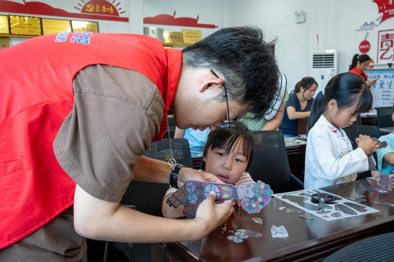在动手实践环节,每个小朋友都领到了一套皮影材料。实践团成员分布在孩子们中间,耐心指导他们进行组装。孩子们在实践团成员的帮助下,一步步将零散的部件组合成一个个可爱的皮影,并为自己的作品命名。过程中,孩子们组装时不时会提出各种问题,实践团成员都一一细心解答,整个现场相当热闹。