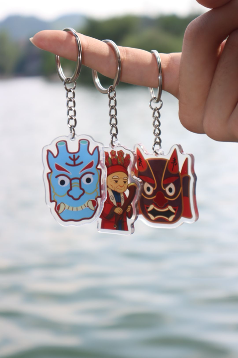 作为湘西地区独特的文化符号,傩文化承载着千年民俗记忆。团队成员结合前期调研成果,精心设计了一系列融合传统傩面元素与现代审美的文创产品,并于当日进行实地拍摄。通过创意设计与新媒体传播,团队希望以年轻化视角推动非遗文化“破圈”传承,让古老傩戏焕发新生机。“我们尝试将傩面图案制成挂件、冰箱贴、亚克力立牌等装饰品,让非遗真正走进人们的生活。”团队成员黄采婷介绍道。