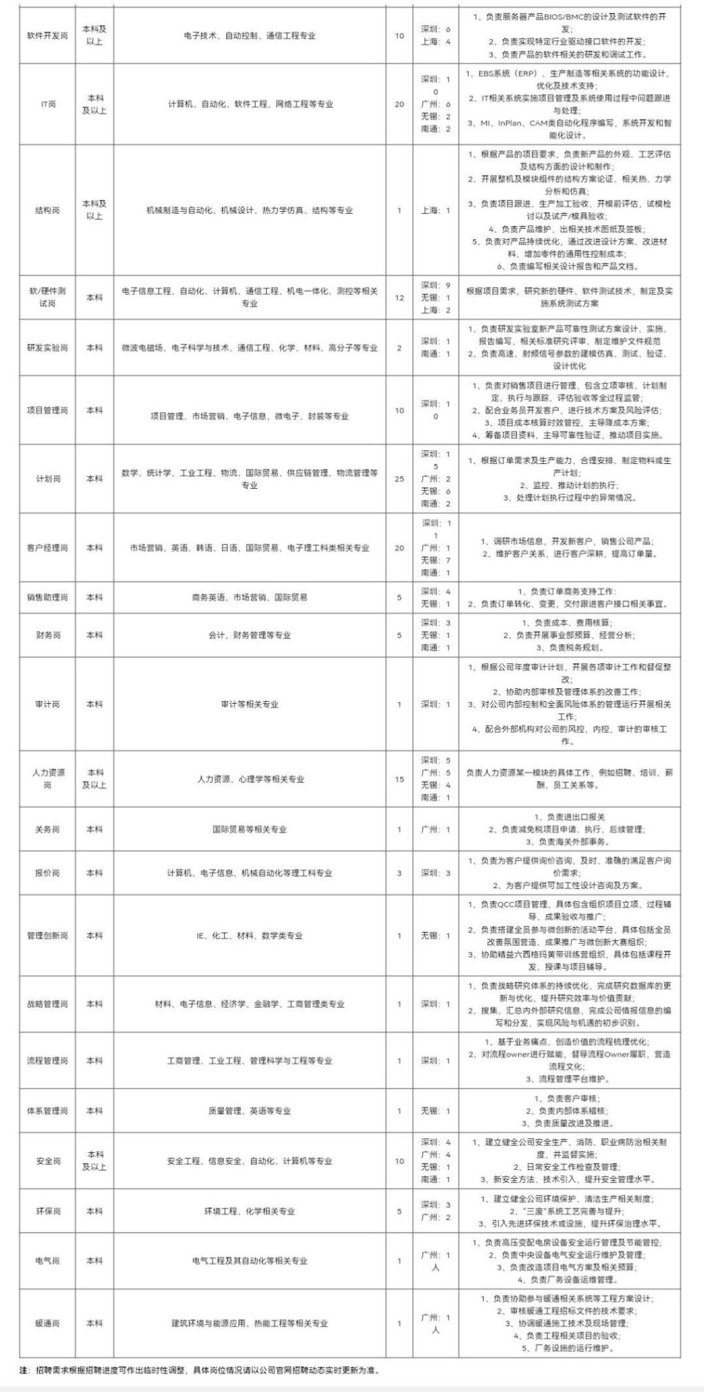 注:招聘需求根据招聘进度可作出临时性调整,具体岗位情况请以公司官网招聘动态实时更新为准。