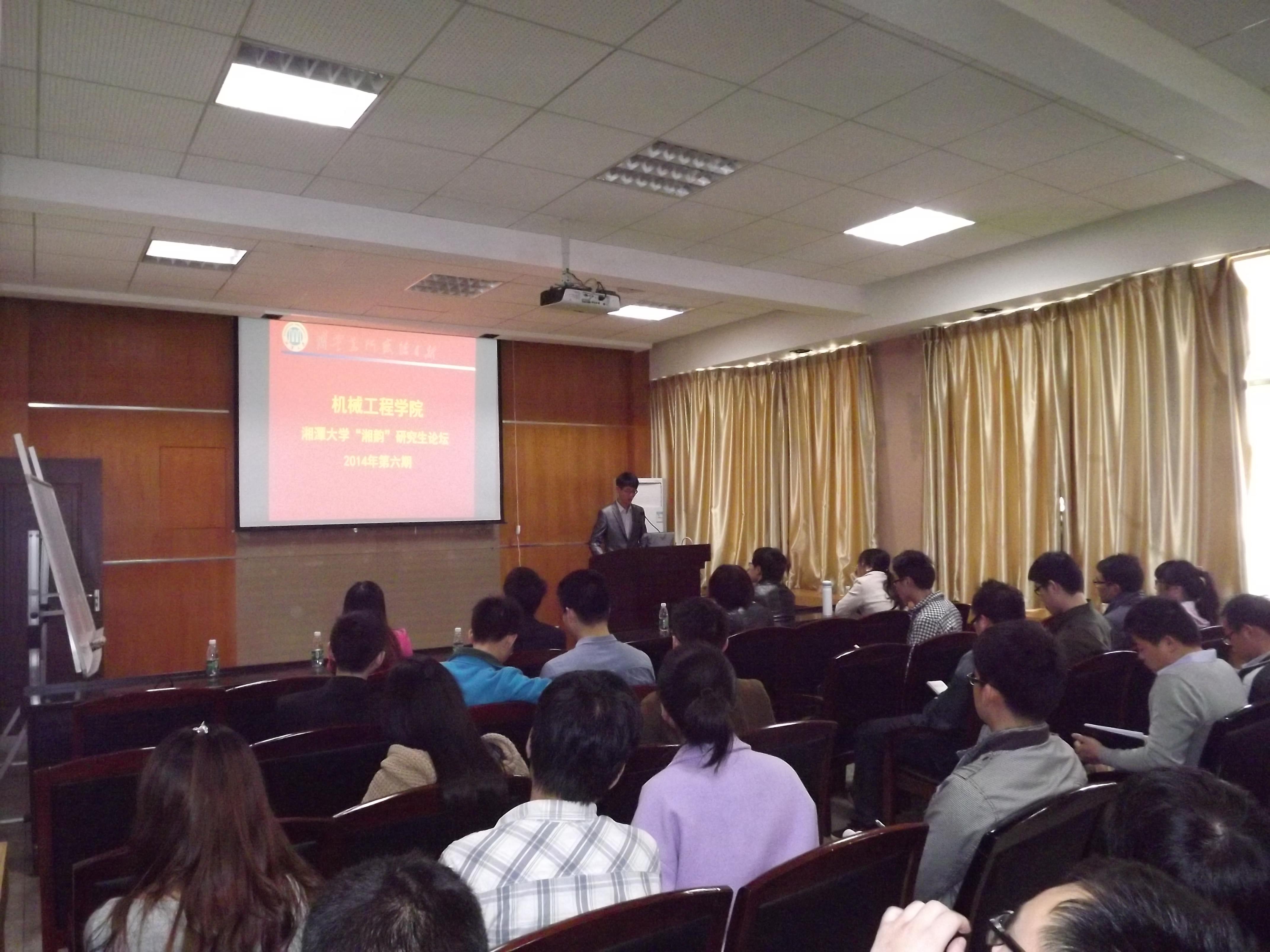 2014329无码影片 湘韵”研究生论坛2014年第六期在机械楼307学术报告厅正式拉开帷幕。本次论坛由无码影片 研究生会、研究生团委主办,由无码影片 机械工程无码影片 研究生分会、研究生团总支承办。邀请了机械工程无码影片 博士研究生邓镕、材料与光电物理无码影片 硕士研究生李婷婷以及机械工程无码影片 硕士研究生颜诚作为论坛主讲人。机械工程无码影片 院长助理彭锐涛副教授、思政干事郭进伟老师莅临指导。