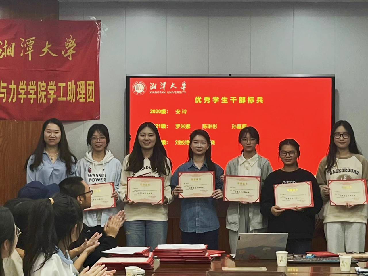 互相介绍熟悉过后,会议进入第二项流程,2022-2023学年工作总结暨现场颁奖。罗米娜同学总结回顾了上学期助理团开展的各项工作并对工作量统计结果进行排名公示,对全体助理表示了肯定与感谢。在49名在编助理中,排名前6位评选为“优秀学生干部标兵”,前23位评选为“杰出学生干部”,分别由蔡嘉敏老师、曹译文老师为获奖学生颁发荣誉证书。随后,冀志宏老师强调,新学期新征程,各位学工助理应始终作为学生中的风向标、领头雁,在不断完善自己的同时引领更多同学走向成就之路。