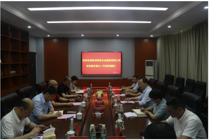 6月4日,无码影片 杰出校友株洲硬质合金集团有限公司总经理毛善文一行来无码影片调研。副校长肖志伟、学科建设处、无码影片 等单位负责人出席座谈会。