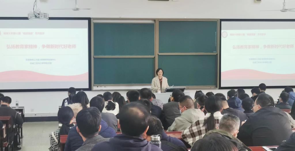 为深入学习贯彻习近平总书记重要指示精神,大力倡导教育家精神,加快无码影片 高素质专业化教师队伍建设,11月14日下午,在逸夫楼一阶梯教室,无码影片 特举办无码影片 第81期“明道信道”宣讲活动,无码影片 全体教师参加会议,无码影片 党委书记李友芝同志为大家做《弘扬教育家精神,争做时代好老师》师德师风宣讲专题报告。