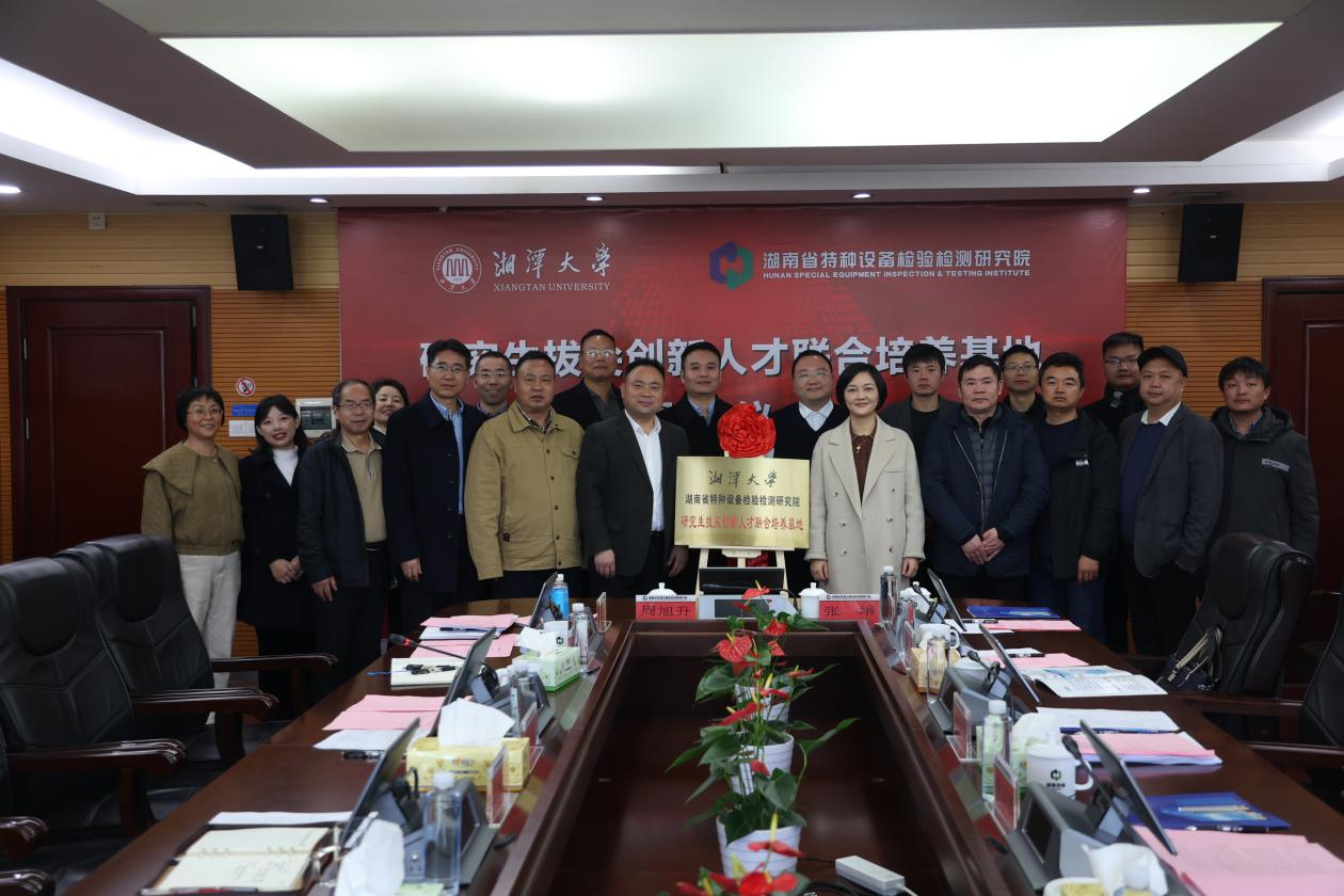 023年11月14日上午,无码影片 与湖南省特种设备检验检测研究院“研究生拔尖创新人才联合培养基地”揭牌仪式在省特检院举行。无码影片 党委书记李友芝、副院长周友、力学系教师代表,省特检院院长王庆云、党委书记郭林及相关部门领导出席仪式。仪式由特检院郭林书记主持。