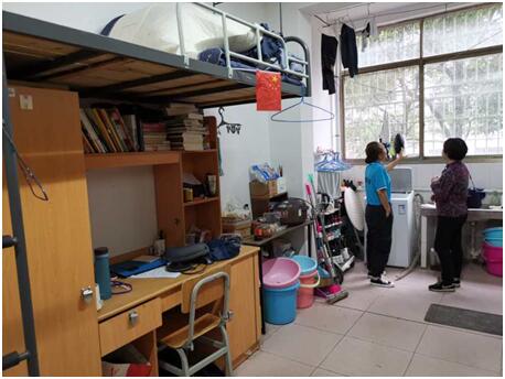 丁琰书记对金翰林1栋、琴湖1栋宿舍楼外来人员登记记录、宿舍楼消毒记录、楼管人员体温测量记录及寒假留校学生进出记录、体温监测记录等一一进行了查阅,查看了宿舍楼的卫生保洁和消毒通风情况。她要求宿管人员要坚决贯彻执行党中央习近平总书记重要指示和李克强总理重要批示,“不忘初心,牢记使命”,提高责任意识,认真做好宿舍楼消毒通风、外来人员体温测量登记等工作,要严格按照疫情防控相关要求,做好假期无人居住宿舍的消毒工作,维护良好的舍区秩序和卫生环境。