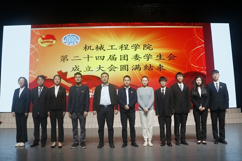机械工程学院第二十四届团委学生会成立大会在学生活动中心报告厅顺利召开。出席本次大会的嘉宾有:机械工程学院党委副书记邓建勇,机械工程学院团委书记刘韬,学工办老师祝爱民、于慧美,机械工程学院第二十四届团委学生会主席团成员、团委学生会全体成员、体育队、裁判协会、辩论队及学生开放实验室全体成员。