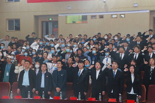 随后,由学工办祝老师宣读校团委文件,院团委第一副书记姚奕汀带领同学们庄严宣誓。