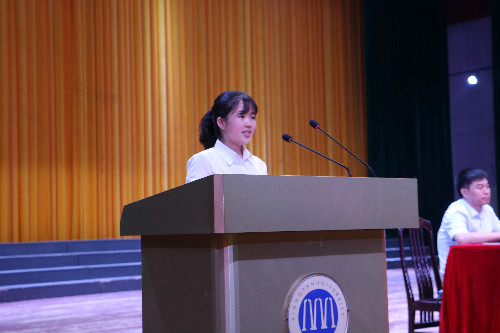 接下来由2017级新生代表向宇飞同学发表演讲,她首先分享了自己对于大学和高中的认识,然后希望能够在接下来的大学生活奋发图强,抛弃随性与懒惰,守住自己的梦想,尽情的施展自己的才华,追求卓越,青春无悔。