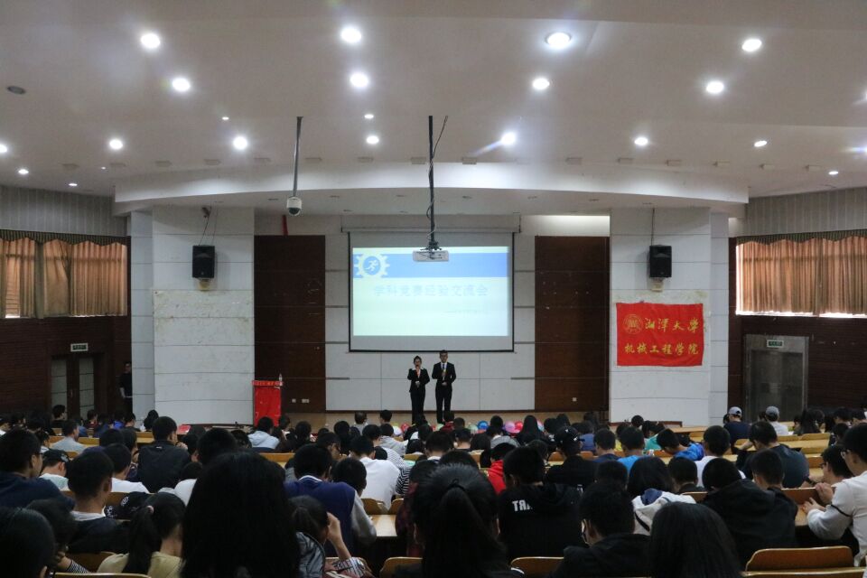 大会开始,周成书记致辞,他强调了竞赛的重要性,鼓励学生积极参加竞赛活动,为自己加分。随后主讲人依次上台交流经验。欧阳嘉以弯道超车为例告诉我们需要具备竞争意识。刘磊介绍了比赛分类,推荐了全国大学生机械创新设计大赛,互联网+ ,数学建模等一系列优秀的赛程。廖慧强强调在比赛中团队意识,坚持不懈这两点非常重要。周才智以诙谐的话语说明大学生不仅要成绩优秀,还要有竞赛经历与经验。袁舒琪解决了如何准备设计比赛这个问题,要去结合专业寻找社会问题,打开眼界,才能设计出吸引人的作品。李文晴讲述了自己的参赛经历及收获,让我们更加深入了解竞赛的意义。徐玲提出要发现问题,思考问题 ,学会借鉴别人的长处改进自己等学习方法。交流完毕就到了提问环节,让我们可以与学姐学长一对一交流,传授经验。到此,大会圆满结束。