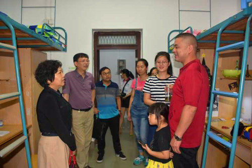 9月1日晚,院领导党委丁琰书记,党委王建平副书记,团委周成书记,学工办彭湘辉、蔡佳敏老师来到北苑、琴湖学生公寓,走进新生寝室,与新生、家长亲切交谈,了解新生入校、报到和食宿等情况。院领导们诚挚的问候,亲切地话语,让新生和家长感觉特别暖心,顿时感受到了浓浓的湘大情意。