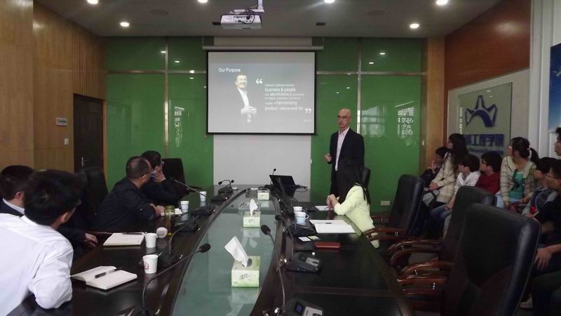 09级工业设计毕业生陈婕妤负责全程翻译。座谈会由马秋成副院长主持,副院长刘金刚、院长助理彭锐涛以及机械专业、工业设计专业相关专业教师和学生参加了座谈会。