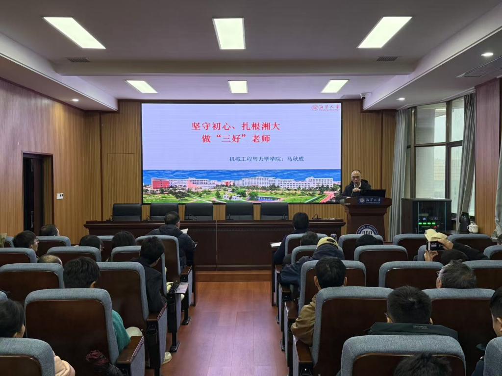 马教授以“坚守初心、扎根湘大,做‘三好’老师”为主题,分享了他扎根湘大三十多年的教学科研经验。马教授表示,机械工程专业的教师一定要以社会需求为导向,以求真务实为根本,以言传身教为示范,培养支撑中国制造的机械类高级专业人才。同时他鼓励年轻教师要以学校为家,为学校的发展贡献自己的力量。