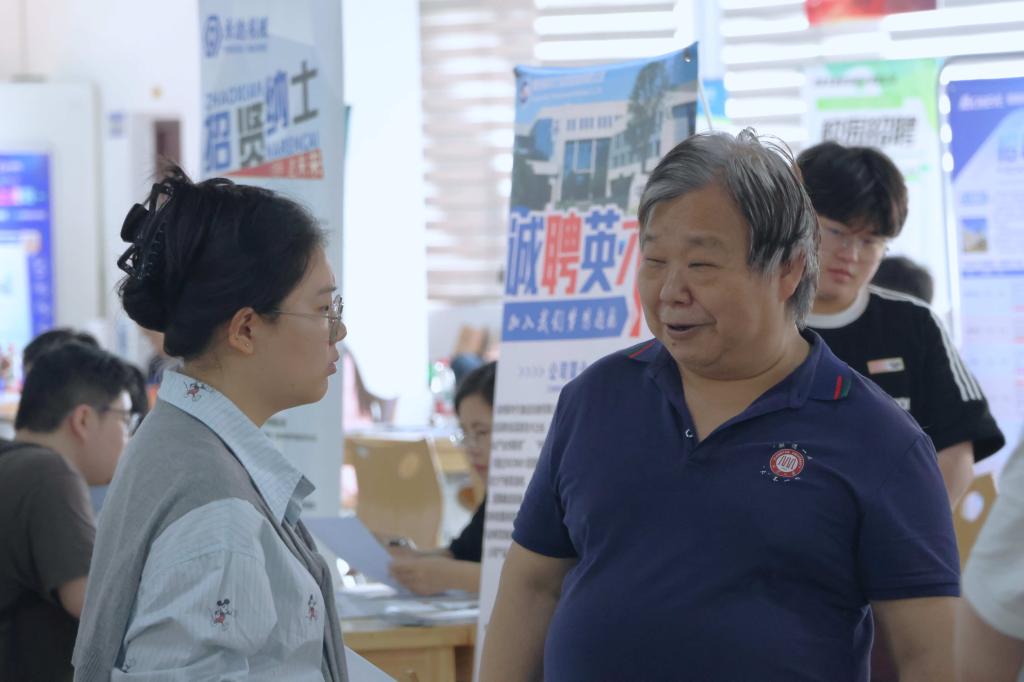 无码影片 关工委副主任徐顺生来到现场指导工作,与毕业生、企业代表深入交流,详细了解企业人才需求、技术发展方向,结合无码影片 学科特色,向企业代表重点推介无码影片 科研优势。同时,与求职学生亲切交谈,询问就业意向与职业规划,鼓励学生树立“扎根行业、服务国家”的就业观,主动把握机遇,展现专业优势。他还结合自身经验,为求职学生提供简历优化、面试技巧等实用建议。