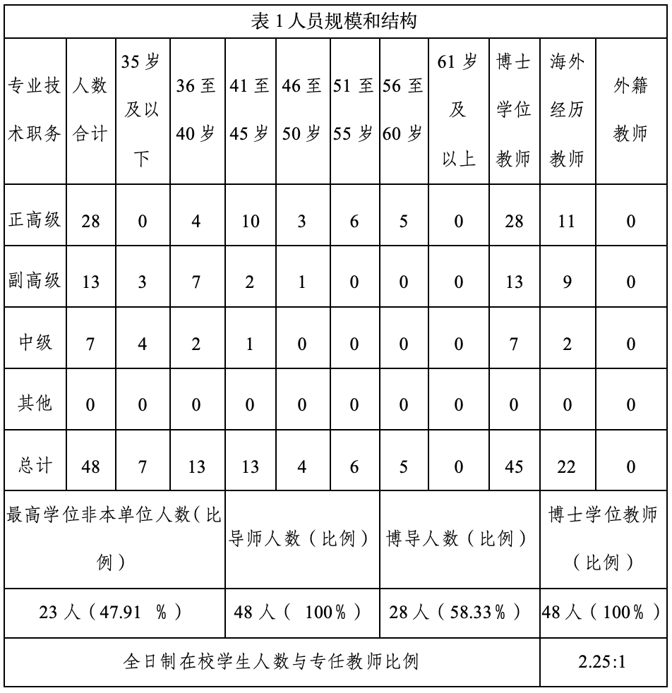 表1.校内研究生导师人员规模和结构