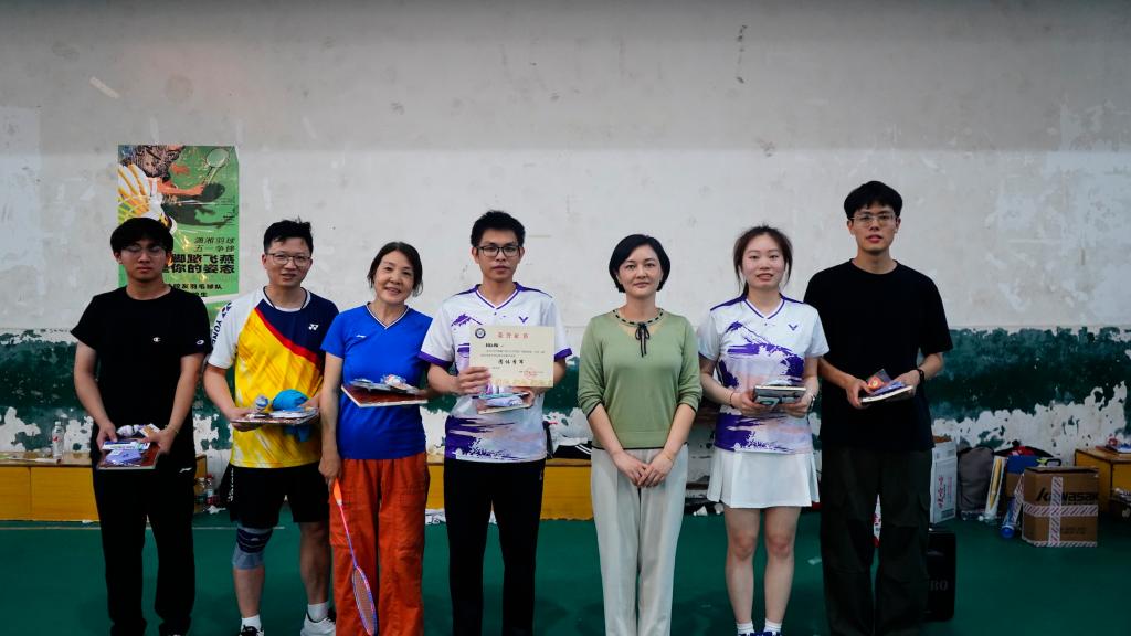 本次比赛共有“胜利队”、“不太会打队”、“自由飞翔队”和“羽毛球是什么队”四支参赛队伍,每支队伍中都由老师和学生共同组成。