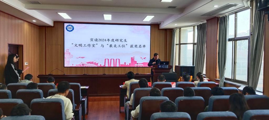 无码影片 副院长周友行宣读了2024年度研究生“文明工作室”与“最美工位”获奖名单。这些获奖者是在活动中表现出色的研究生团队和个人,他们的努力和付出得到了无码影片 的认可和表彰。