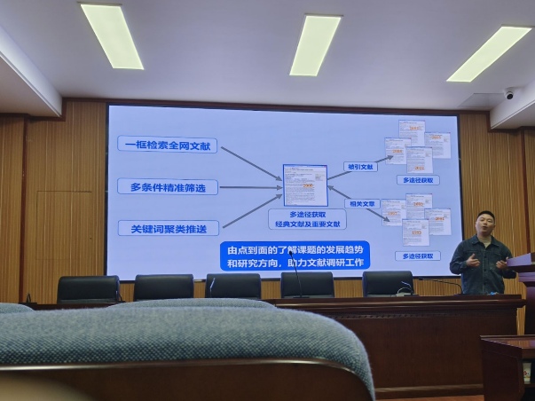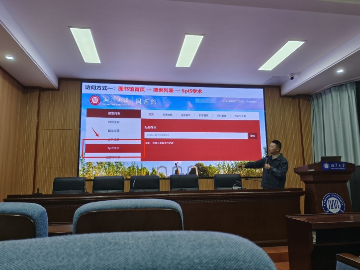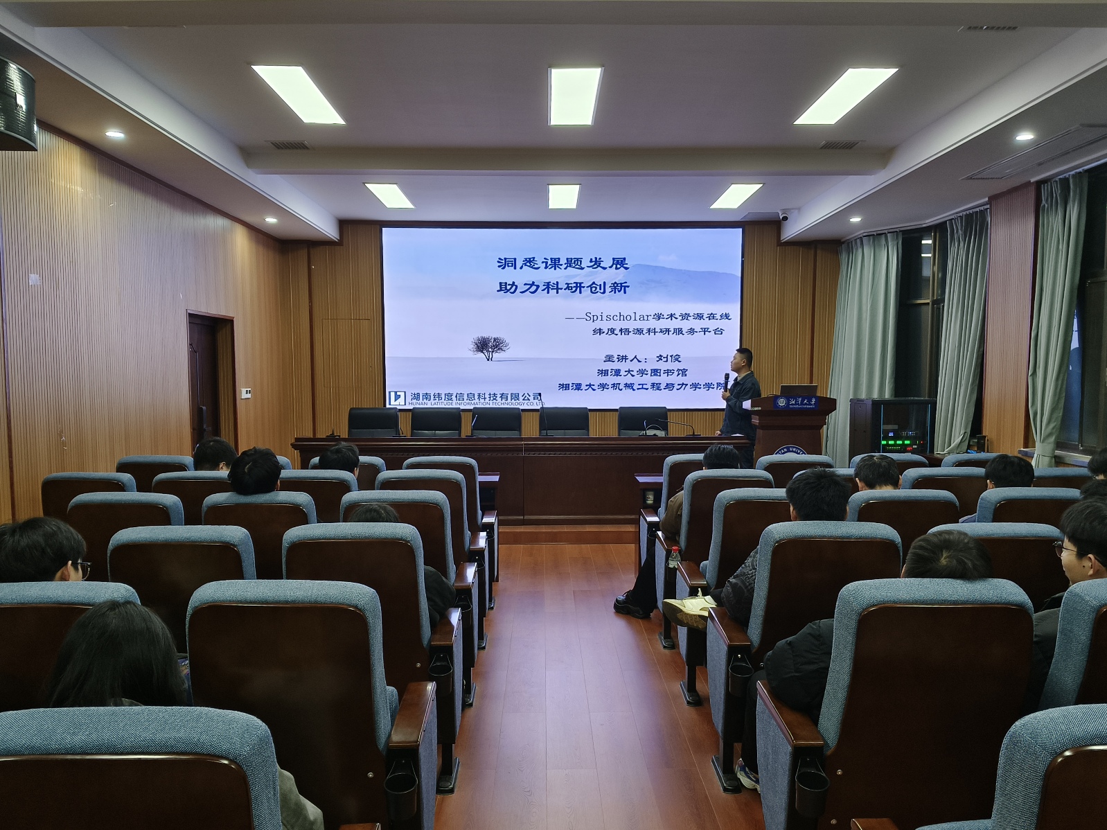 11月26晚19:00,无码影片 于机械楼317顺利召开了关于“图书馆‘Spischolar学术资源在线’数据库介绍”的学术讲座,该讲座邀请了湖南纬度信息科技有限公司讲师刘俊作为主讲人,围绕“洞悉课题发展,助力科研创新”的主题,为我们带来一场学术盛宴。无码影片 七十余名研究生参与论坛。