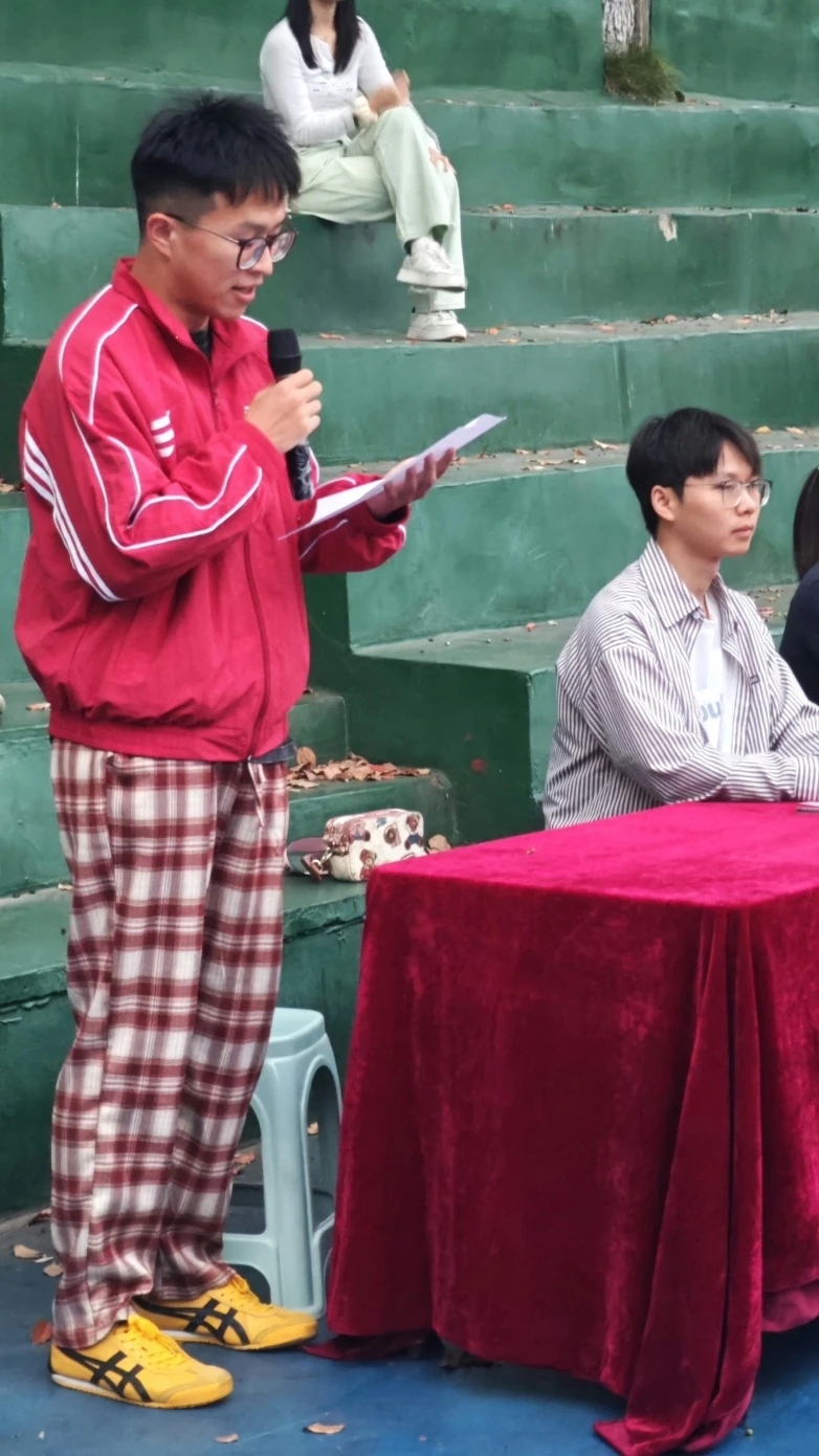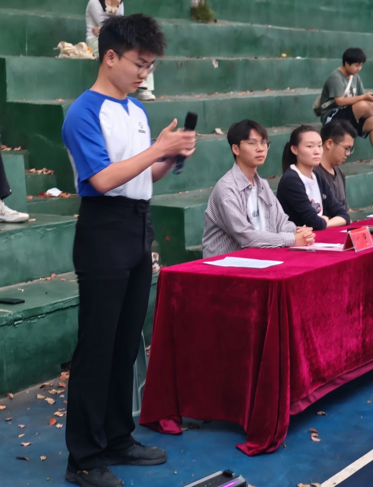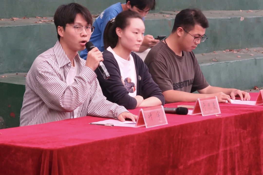接着由研究生会主席叶宇发言,他希望赛场上大家秉持着友谊第一、比赛第二的原则,听从指挥、服从裁判。