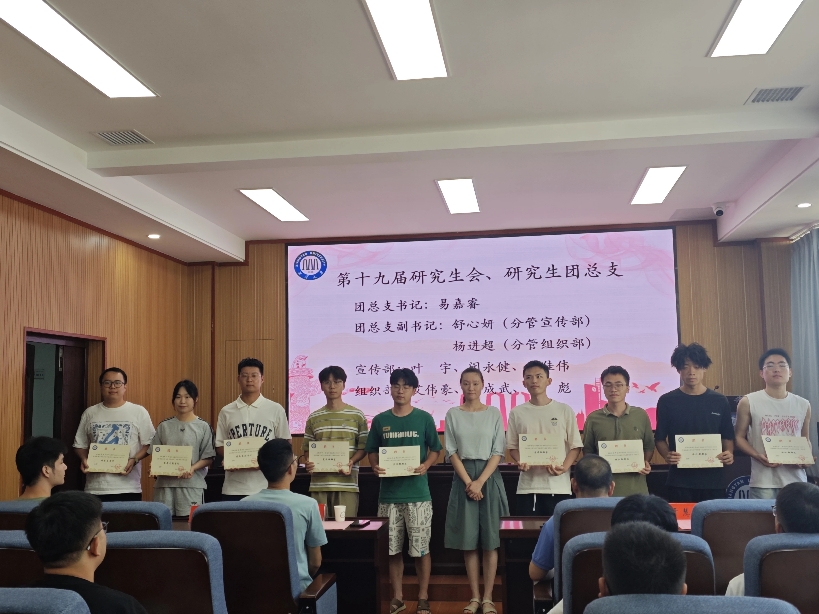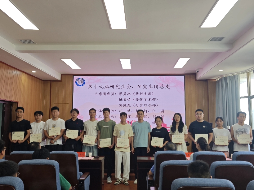 致辞结束后,周友行副院长为第十九届研究生会、团总支全体学生干部颁发优秀学生干部证书。