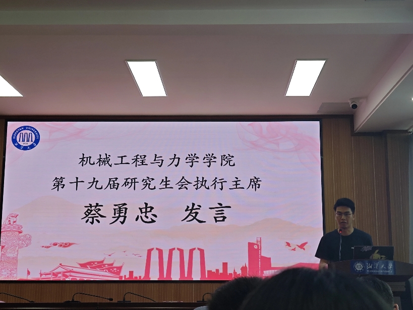 证书颁发后,无码影片 第十九届研究生会执行主席蔡勇忠对上一年的研会工作进行了总结汇报。蔡勇忠在日常管理、学术活动、文体活动等多方面详细总结了过去一年工作所取得的成绩。同时也对新一届的研会、团总支成员提出以下些许期望和建议:一是加强于校研会的兄弟无码影片 之间的交流与合作、二是加强内部联系、三是有计划的开展工作。