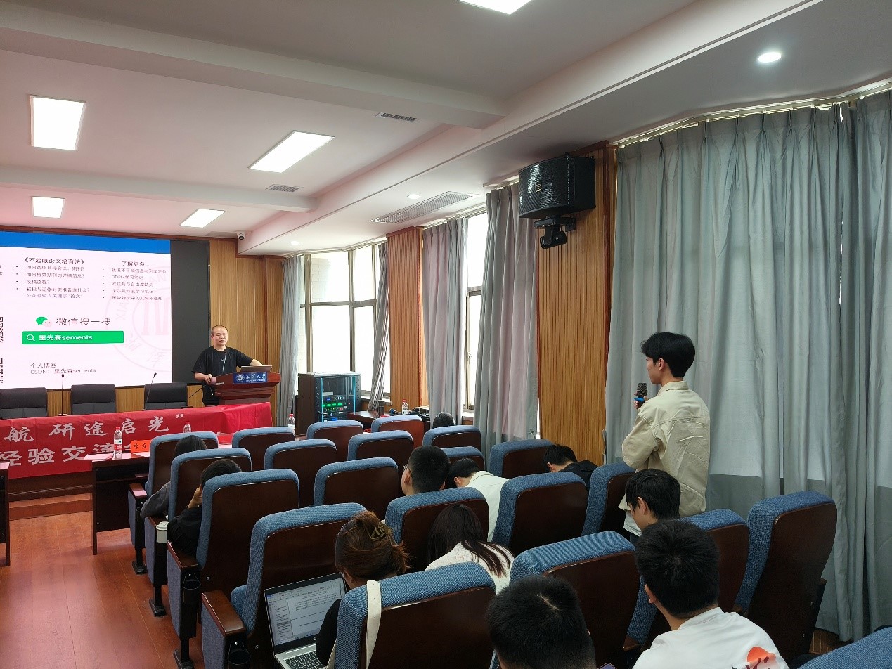 在互动环节,同学们踊跃地就学术研究、论文写作等方面遇到的问题向分享嘉宾提问,现场交流热烈。分享嘉宾耐心解答,给予同学们针对性的建议。