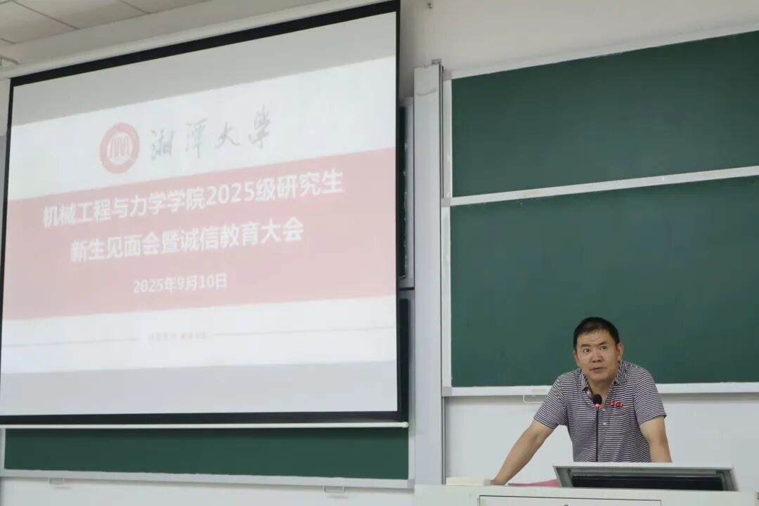 2025年9月10日,无码影片 2025级研究生新生见面会暨诚信教育大会在研究生院四阶教室举行。无码影片 党委书记李友芝,院长周友行,副院长姜胜强,李方老师及研工办祝爱民老师、刘莹赢老师出席,2025级全体研究生新生参会,会议由祝爱民老师主持。