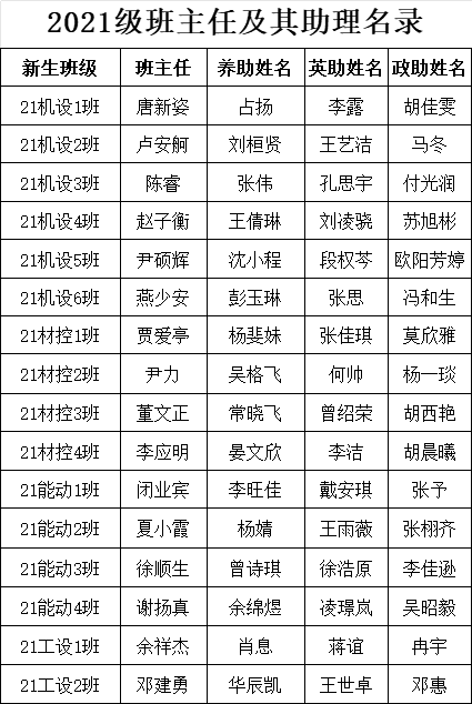 2021级班主任及其助理名录